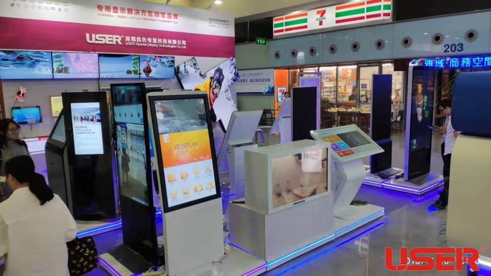 此次高交會上,優色專顯精心推出65寸超薄雙面廣告機、人體感應鏡面廣告機、透明櫥窗廣告機、裸眼3D廣告機、手機同屏會議一體機、人臉識別定點推送廣告系統、廣告機商場樓層導航系統、連屏菜排、3D全息風扇以及無色差4K高清超窄邊異行拼接等十大類商顯產品,通過對展館的精心布置和對產品的個性化展示為到會參觀者帶來了非同一般的超凡體驗,引領了商用顯示產品的新潮流。