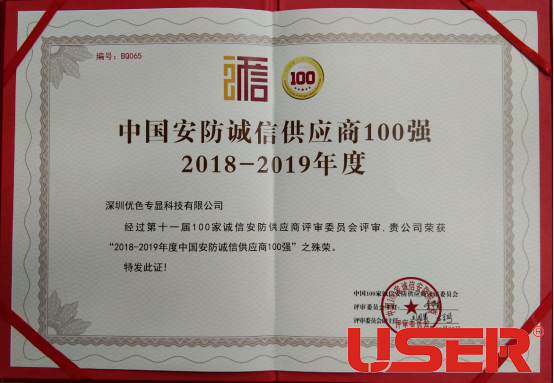 優(yōu)色專顯拼接屏榮獲第十一屆北京安博會(huì)100家誠(chéng)信品牌安防供應(yīng)商