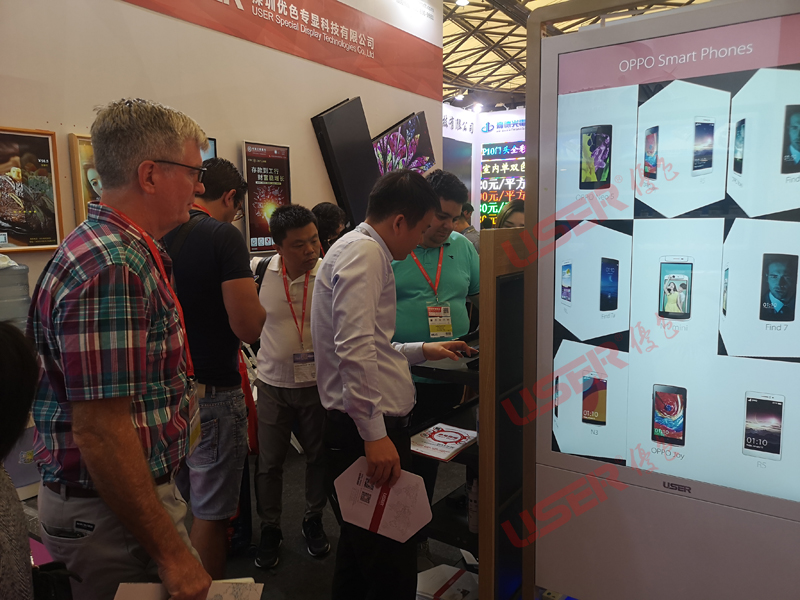 優色專顯此次推出55寸雙面廣告機、65寸戶外公交站臺雙面廣告機、人體感應鏡面廣告機、裸眼3D廣告機、小微微信打印一體機、手機同屏會議一體機、人臉識別定點推送廣告系統、廣告機商場樓層導航系統以及無色差4K高清異行拼接屏等十大類商顯產品,展示內容涵蓋了消費電子終端、智能硬件、智慧零售、人工智能、數字文娛等領域,優色專顯為大家準備了一場視覺與科技相融合的個性化展示體驗。