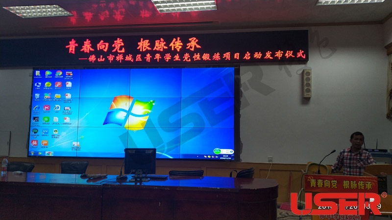佛山華才學校46寸3x4拼縫3.5mm壁掛液晶拼接屏項目