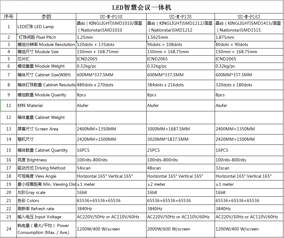LED智慧會議一體機參數:
