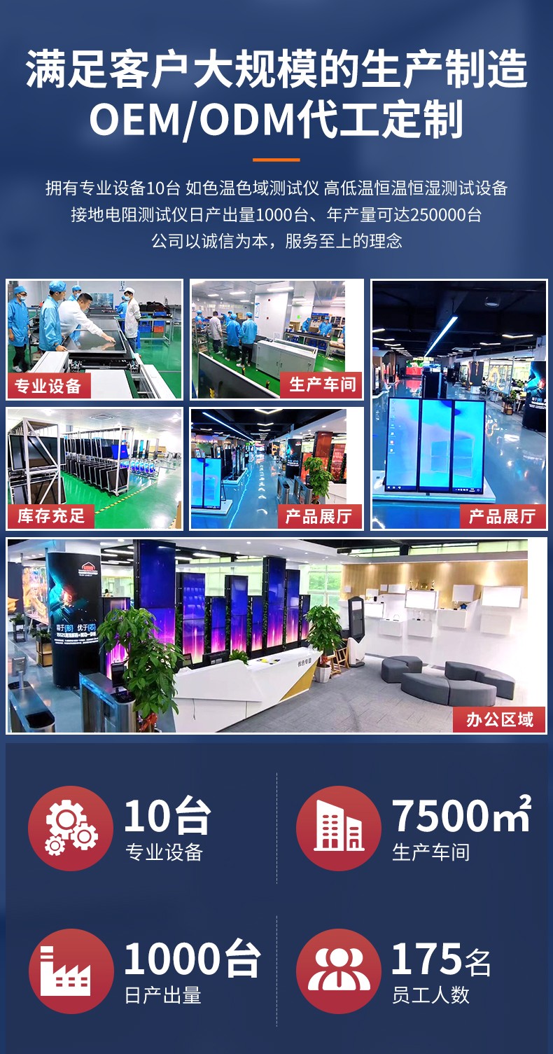 菜單產品中心Product center 液晶廣告機 壁掛式廣告機 落地立式廣告機 電梯超薄廣告機 車載廣告機 高亮廣告機 戶外廣告機 液晶拼接屏 專業液晶拼接屏 4K液晶拼接屏 廣告拼接屏 無縫液晶拼接屏 觸摸液晶拼接屏 LED顯示屏 觸控一體機 壁掛式觸控一體機 立式觸控一體機 斜面觸控一體機 智能家居觸控一體機 戶外觸控一體機 液晶電子白板 教育電子白板 會議電子白板 工控一體機 觸摸顯示器 紅外觸摸顯示器 電容觸摸顯示器 電阻觸摸顯示器 聲波觸摸顯示器 納米觸摸顯示器 液晶監視器 專業級監視器 4K監視器 嵌入式監視器 機架式監視器 開放式監視器 SDI監視器 高亮監視器 廣播級監視器 工業顯示器 4K顯示器 機架式顯示器 開放式顯示器 醫療顯示器 KVM顯示器 指揮室顯示器 智慧校園產品 專業定制商顯 多屏廣告機 多功能觸控一體機 多功能廣告機 微信打印廣告機 魔鏡廣告機 透明廣告機 全息廣告機 條形屏廣告機 旋轉廣告機 裸眼3D廣告機 人工智能產品 顯示配套設備 拼接配套設備 廣告機播放盒 OPS播放盒 拼接支架 移動支架 相關軟件 吊頂支架 線材 木架 蜂窩箱 桌面底座 熱門產品 →優色3.5mm超窄邊46寸液晶拼接屏→優色49寸3.5mm超窄邊液晶拼接屏→優色3.5mm超窄邊55寸液晶拼接屏 您的位置:首頁 → 公司產品 → 液晶廣告機 → 落地立式廣告機 55寸立式廣告機類別:落地立式廣告機 簡介:采用高清16:9全視角LCD顯示屏,分辨率為1920*1080,Android、Windows、單機等方案可選,顯示面積 680.4*1209.6mm 顯示比例 16:9 可視角度 89/89/89/89(左/右/上/下) 亮 度 350cd/m2 背光類... 在線咨詢 返回列表 產品說明 相關產品 65寸落地立式廣告機 55寸立式廣告機 50寸立式落地廣告機 43寸立式落地廣告機 43寸46寸49寸55寸65寸86寸仿蘋果款立式廣告機 55寸超薄立式廣告機
