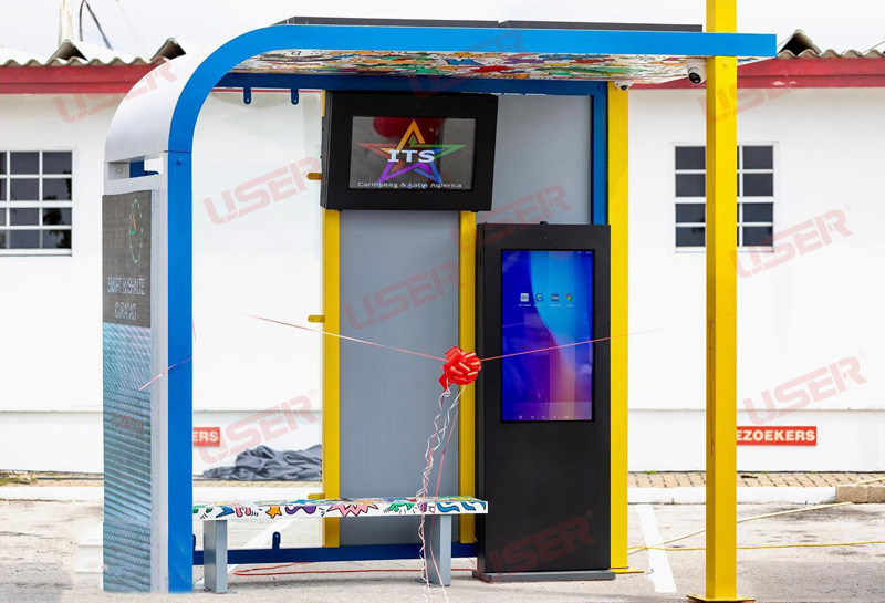 優色專顯在庫拉索32寸戶外壁掛廣告機+43寸戶外落地廣告機項目安裝調試完成,該項目用于庫拉索公交站臺,得到當地部門的高度關注。