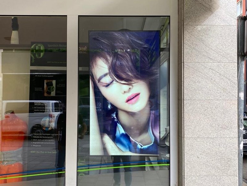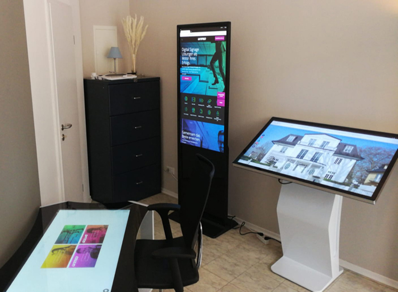 優(yōu)色立式廣告機(jī)和臥式觸摸一體機(jī)用于德國(guó)某公司展廳展示
