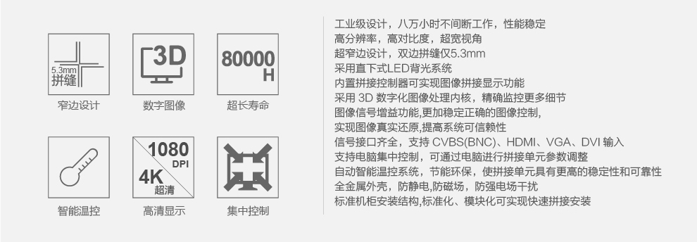 優色5.3mm超窄邊55寸液晶拼接屏類別:專業液晶拼接屏