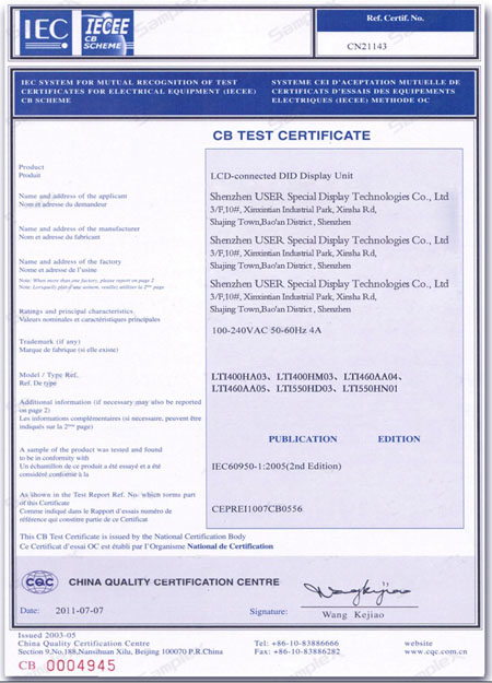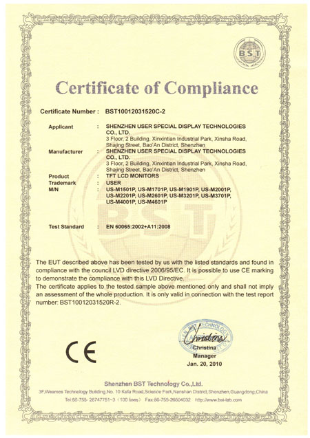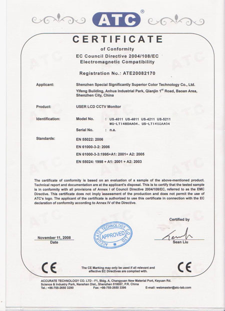 FCC認(rèn)證歐盟認(rèn)證(液晶監(jiān)視器合格證明證書(shū))
