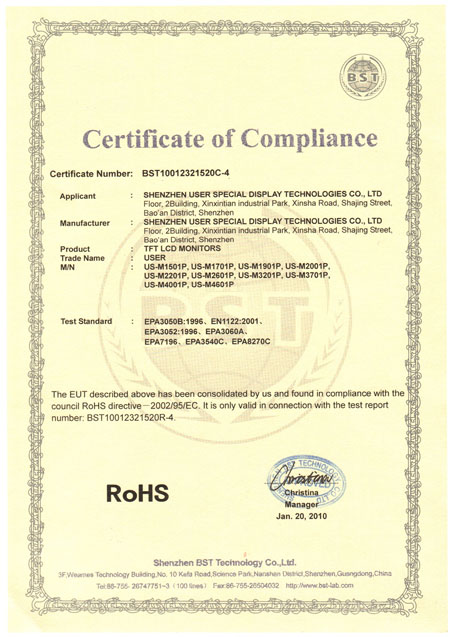 ROHS歐盟認(rèn)證(監(jiān)視器)