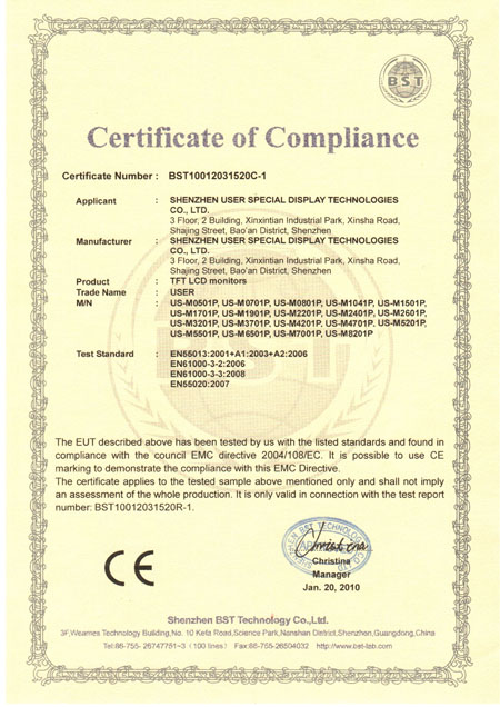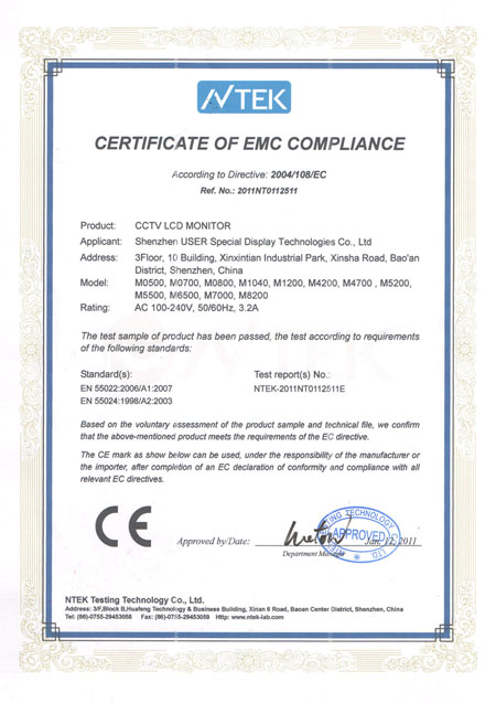 CE認(rèn)證歐盟認(rèn)證(液晶監(jiān)視器 EMC證書(shū))