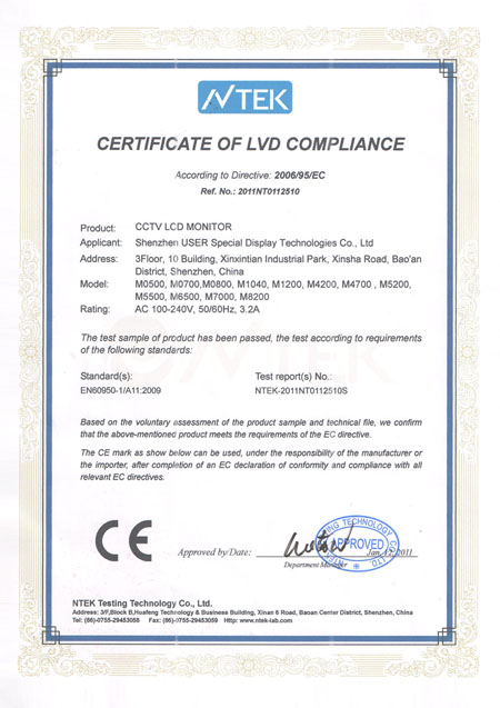 CE認(rèn)證歐盟認(rèn)證(液晶監(jiān)視器 LVD證書(shū))